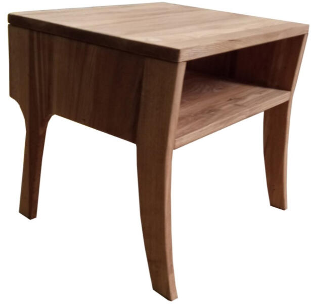 Tömör tölgyfából készült éjjeliszekrény, amely kis éjjeliszekrényként is szolgálhat. Az ívelt lábak, a lekerekített élek és a tölgyfa természetes megjelenése hozzájárul a szekrény kellemes, organikus érzetéhez. Az asztallap szinte négyzet alakú, méretei 48x38 cm, és egy tágas, nyitott polccal rendelkezik a felső lap alatt. Az asztallap 2 cm vastag. Az éjjeliszekrény már összeszerelve érkezik. Tekintse meg az azonos nevű kollekció nagyméretű ágyait is.
