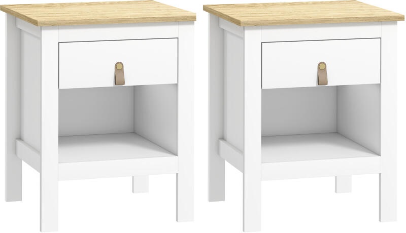 Homcom 2 db-os éjjeliszekrény szett fiókkal és nyitott polccal, fehér és tölgyfa színben