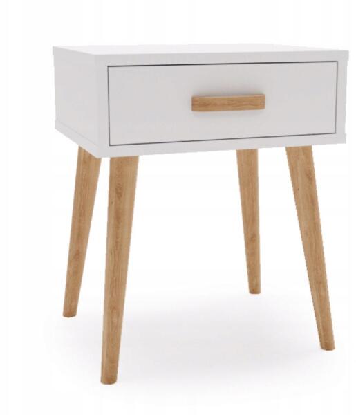 Kobi Luna éjjeliszekrény fa lábakkal fehér Éjjeli asztal skandináv stílus (K11O18B2I9_M)