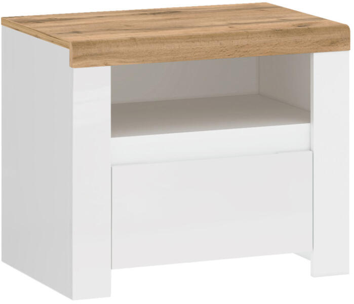 TEMPO KONDELA Éjjeliszekrény 1S, fényes fehér/wotan tölgy, VILGO - smartbutor