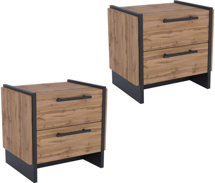 TEMPO KONDELA Éjjeliszekrény, 2 Db-Os Szett, Wotan Tölgy/Fekete, Amoni 2S - fizz