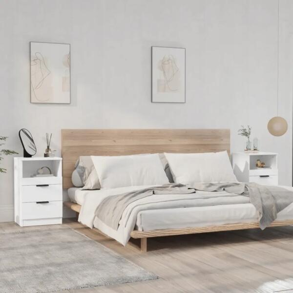 vidaXL Éjjeliszekrény, 2 db, fehér, fa alapanyagALLEGRO