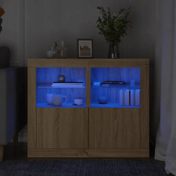 vidaXL LED-es szekrények, 2 db, sonoma tölgy, fa alapanyag (8721012252196)